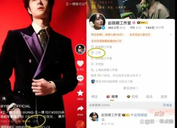 第二波糖分来自除夕夜的"地理巧合"。河北籍的赵丽颖与洛阳长大的王一博,IP地址竟不约而同定位于江苏。这个看似寻常的细节在CP粉眼中堪比摩斯密码——要知道赵丽颖近年主要活跃在京津冀,而王一博的工作轨迹多集中在京沪,两人在传统团圆夜同时现身江南水乡,很难不让人联想到某些"私人行程"。