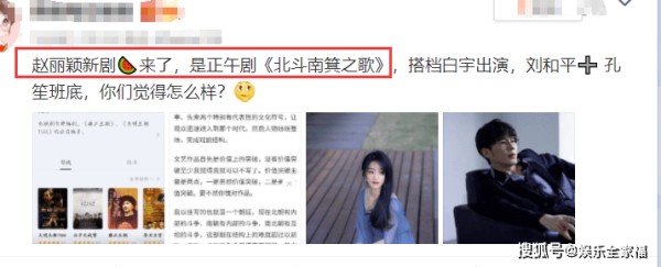 不过目前刘和平的《北斗南箕之歌》还没有公布角色消息,所以大家还是要以官宣为准,赵丽颖和白宇不一定出演呢,毕竟两人都有自己的档期。对颖宝粉丝而言,是希望她能出演的,这么好的班底和编剧,有机会实现口碑逆袭呢。
