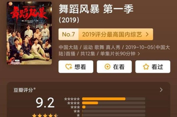 正是通过大家的共同努力和舞台上的合理分工,《舞蹈风暴》在第一季播出,获得了9.1分的高分。
