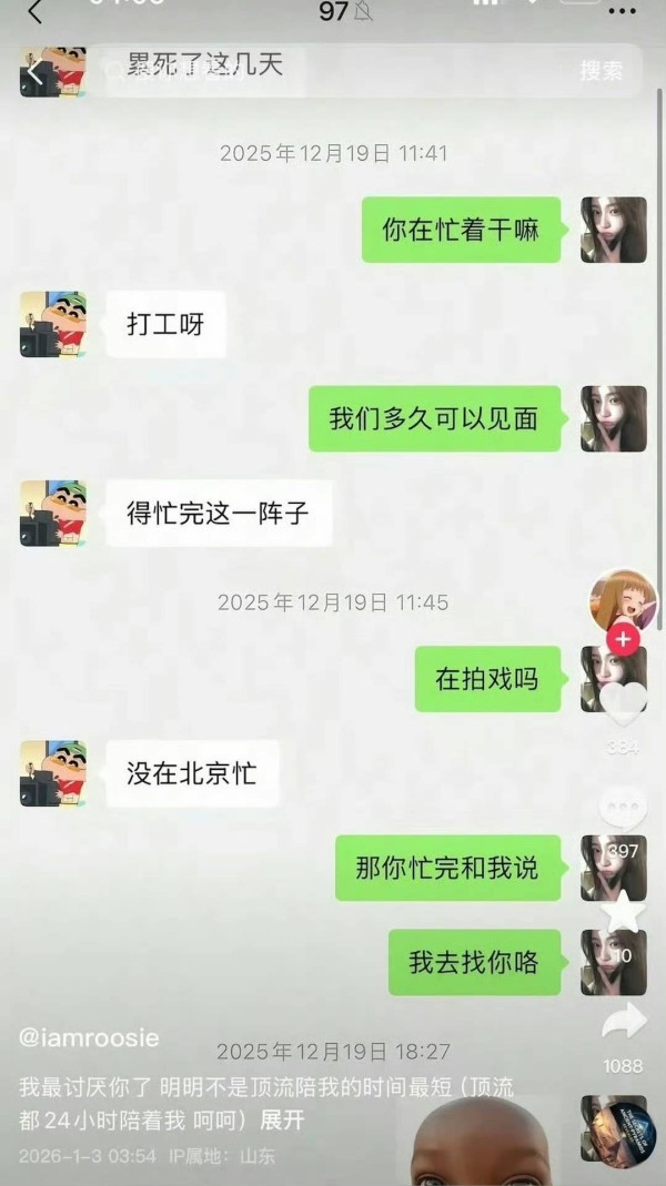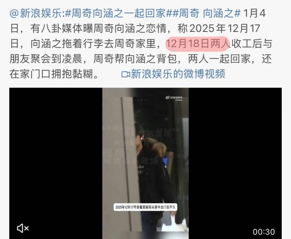 2026年新年的前四天,娱乐圈就发生了一连串惊爆事件,似乎每个瓜都接连不断。就在昨天,网络红人司晓迪发布了一篇引发轩然大波的文章,公开宣称自己已经30岁,并且与多个顶流男星发生过关系,其中包括鹿晗、林更新等十多位人气男星。紧接着,另一位男星周奇也被曝光,与司晓迪的聊天记录引发了新的风波。就在大家还在消化这些信息时,周奇今天又被曝出了新的八卦。