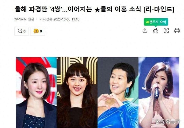 2025年才过去十个月,韩国娱乐圈的“离婚潮”就像抢跑的灰狗,早早给吃瓜群众献上一出年度大戏。短婚长婚、体面分手还是狗血抓马,这四段婚姻故事完全刷新了大家对女明星离婚的理解。看完你就会发现,在那些光鲜亮丽的婚纱照背后,哪段婚姻不是一本厚厚的“操作手册”?