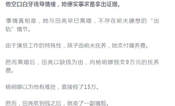 在离婚风波中,田亮似乎化身为正义的化身,利用舆论这把锋利的剑,频频发出警告、威胁和炫耀之词。而另一方,杨明娜却保持了沉默,成为了众人瞩目的焦点。