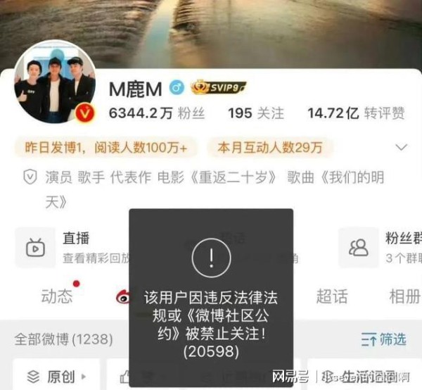 鹿晗多平台账号被禁止关注,当内娱“活人”也别太放飞自我
