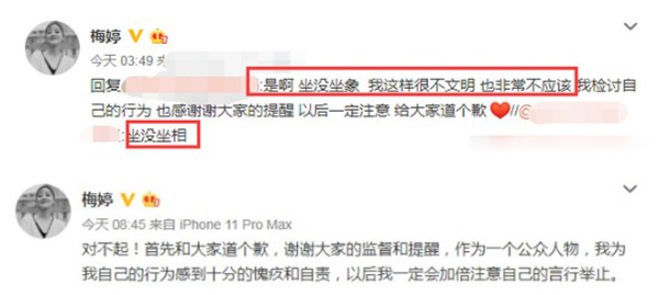 其实,不仅是梅婷,很多当红明星都在类似的不文明行为上栽过跟头,或许她们只想与粉丝分享工作的疲劳、生活的快乐,或只想凹个造型等等,却不料被网友一顿痛批,造成不良影响。