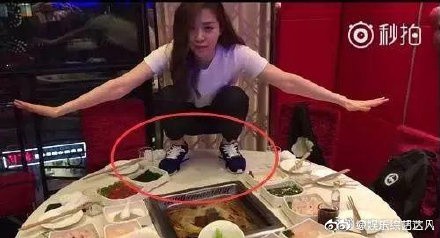 张靓颖不踩椅子,直接上桌了。据了解,当时张靓颖和朋友一起吃火锅,打赌输了,被罚站在桌子上,还在微博上晒出了照片。看到照片的粉丝不买账了,觉得不应该站在饭桌上胡闹,就算是明星也不能有特权。