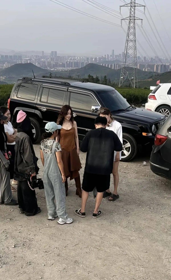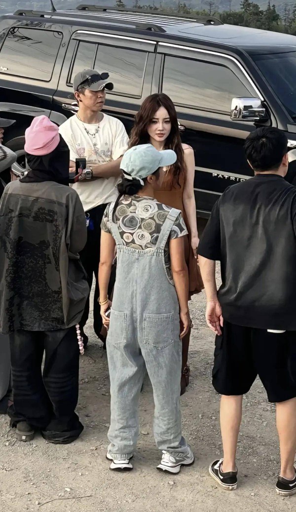 42岁李小璐山顶拍摄被偶遇,个子好矮像1米5,浓妆艳抹愁眉苦脸