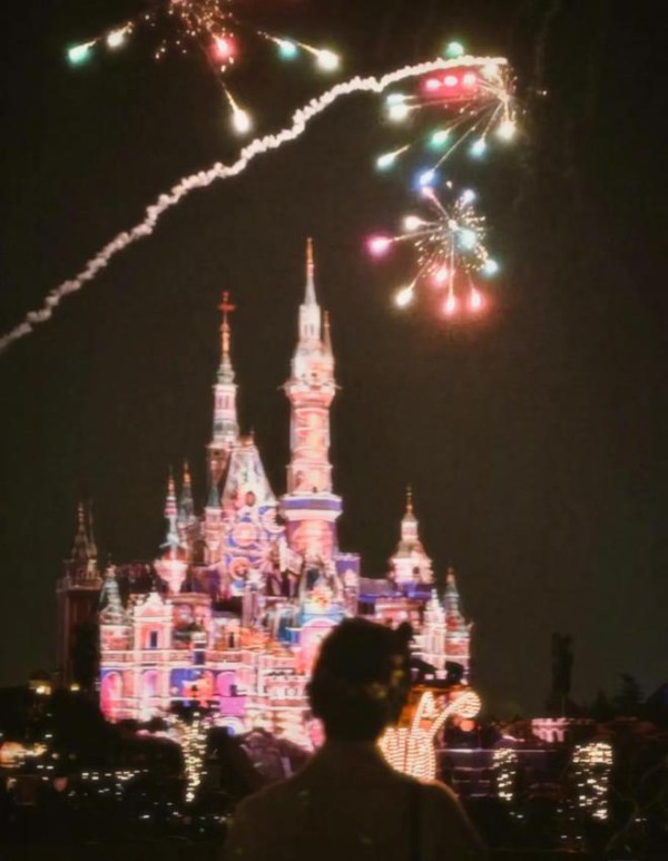 而且这次过生日,她还是在迪士尼度过的,晚上的迪士尼灯光亮起,像一座漂亮的城堡,她和城堡合影,像回到了自己的家一般。