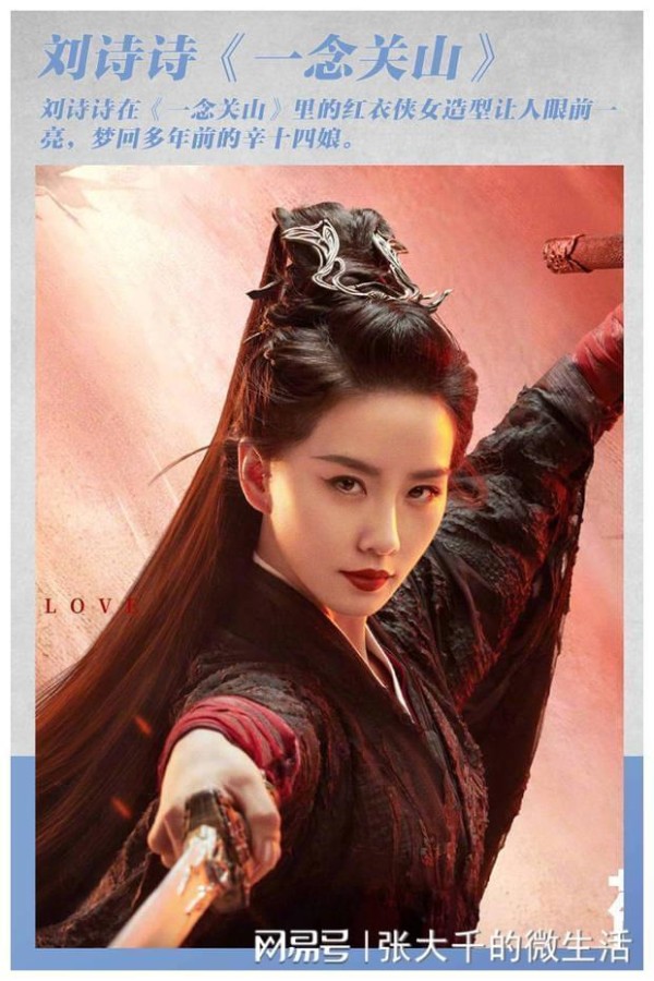 刘诗诗《一念关山》:刘诗诗搭档刘宇宁出演《一念关山》,饰演英姿飒爽的侠女任如意。刘诗诗清秀的眉眼和温婉的气质格外吸睛,同时有着深厚舞蹈功底的她在拍摄打戏时行云流水,因此被网友称赞为“天选古代人”。