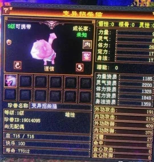 这种新手宝宝一般来说资质都比较低,小八妹见过的招柴猫资质大多不过1700。