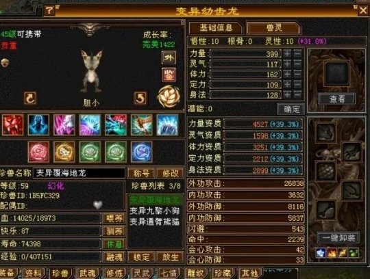而且兽灵的打造也很高,外功攻击达到了2.6万!