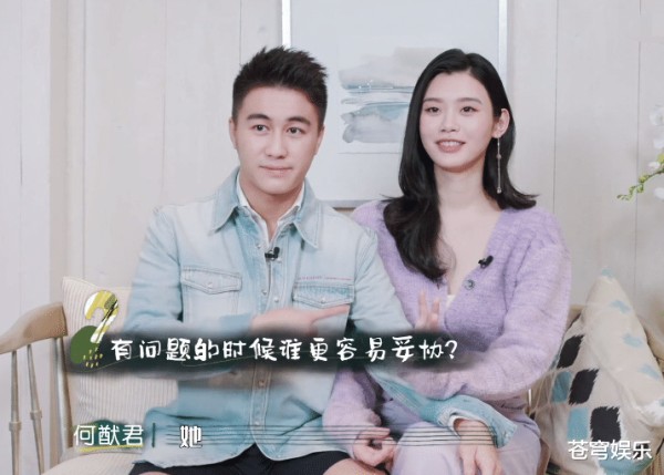 而当被问到了有问题谁更容易妥协的时候,这时奚梦瑶就露出了笑容,然后说“我”,何猷君也是很诚实地就回答了:“她。”两人非常默契了。在说到这个问题的时候,奚梦瑶虽然回答了是自己比较容易妥协,但是呢她并还会满脸幸福的模样,这可以看出她即使是为了老公妥协也是觉得没什么,是一种幸福了。