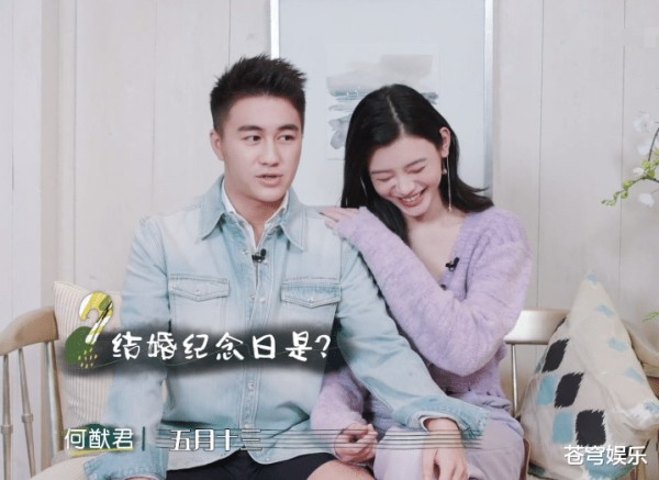 在问到结婚纪念日的时候,奚梦瑶在这时也没有很快答出来,她不知道是瞬间想不起来还是要等着老公说,所以在这时她就在老公身边低头笑了起来。但是呢,何猷君也是马上就给出了答案,那就是五月十三日,而且是非常肯定的答案了。