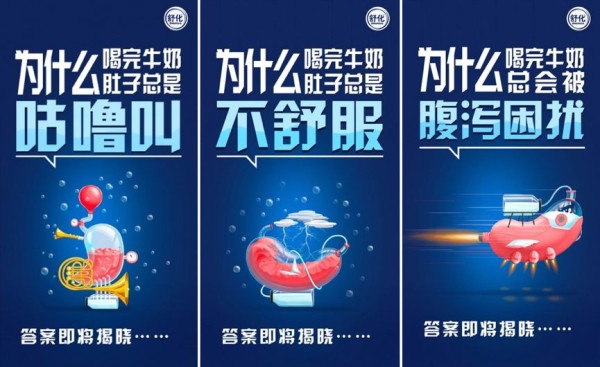 本轮命题即借助节目热度深化产品卖点,挑战赛预热阶段一组牛奶营养吸收三连问海报先发上阵,看完让人对“乳糖不耐”茅塞顿开: