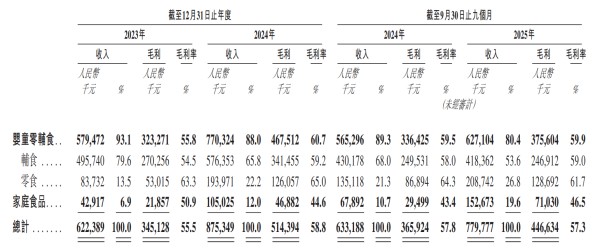 产品布局方面,公司已形成覆盖婴幼儿零辅食、家庭有机食品的完整产品线,截至2025年9月30日,产品组合已涵盖269个SKU,其中婴童零辅食195个SKU,家庭食品74个SKU,契合现代父母及家庭对食品便捷性、营养性、卫生性与口感的期望。