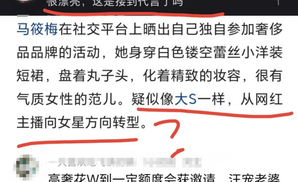 这就不由得让人想起大S了。当年嫁给汪小菲之后,那真是风光无限,各种代言接到手软。现在马筱梅和汪小菲的婚礼也提上日程,难道也要复制大S的路线,转型做明星?