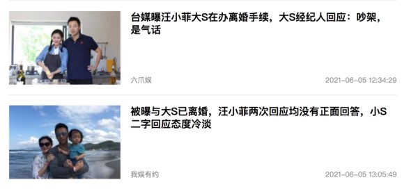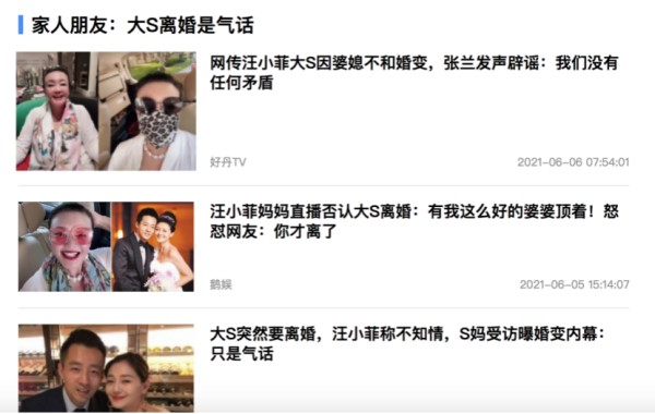 随后,台媒曝出了大S汪小菲离婚的消息,并称得到大S方面的证实。