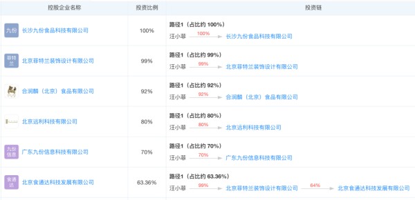 天眼查显示,目前汪小菲出任北京食通达科技发展有限公司董事长,并持有公司63%股份。而食通达公司旗下控股北京粤洱堂餐饮管理有限公司和北京麻六记餐饮管理有限公司。