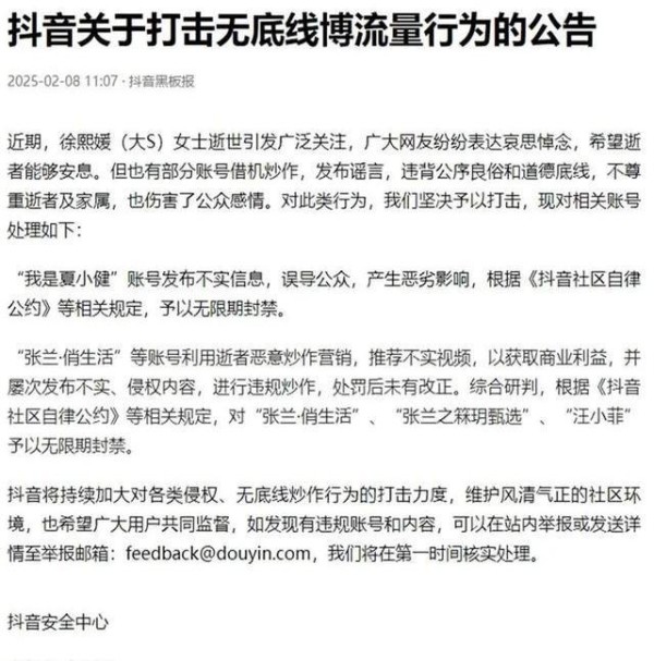 抖音官方那公告,用词那叫一个犀利,直接盖章“恶意炒作”,这可不是闹着玩的,比“禁言套餐”还狠,直接账号火化。