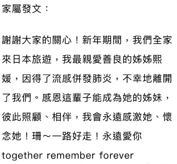 大S去世近百日 小S蔡康永等撰文追忆:愿把温暖和美好化为前行之力