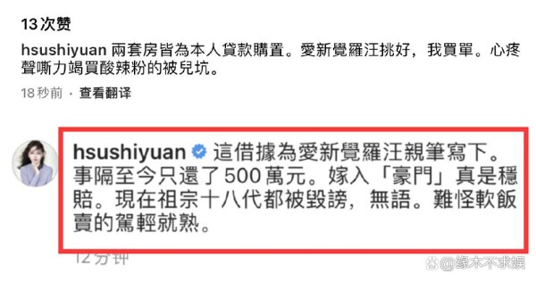 大S的证据看似凌厉逼人,实则一点也经不起推敲。婚内就让汪小菲写欠条,本就带着很强的目的性;另外大S说两套房子都是自己买的,更是无稽之谈,因为此前她曾亲口承认房子是汪小菲所买,只是登记在自己名下。
