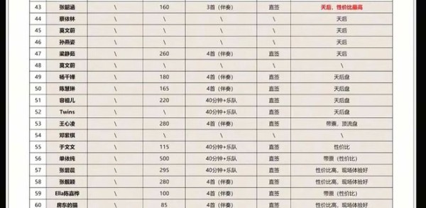 乐坛部分歌手出场费曝光,网友:歌手间的差距还是挺大的。