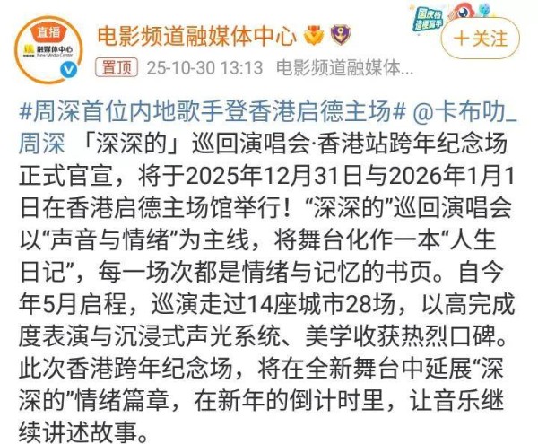 2025年,歌手周深的演唱会无疑成为了音乐界的热点话题。从12月31日到1月1日,他在香港的演唱会为即将到来的新年带来了浓厚的跨年氛围,也标志着他在事业上一个新的突破。这场演唱会,不仅在时间上具有象征意义,更为他与歌迷之间的关系注入了新的活力。