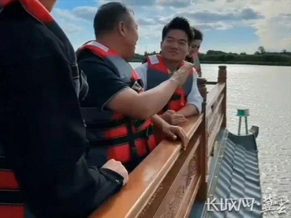 在运河中心码头,董宇辉乘坐游船,与香河大运河文化研究会会长王爱民共话运河文化,共览运河风光。随着船只缓缓前行,两岸风光如画,古老的运河与现代的城市景观交相辉映,展现出廊坊独特的运河风情。