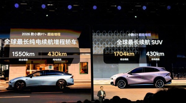1 月 8 日消息,全球最长续航 SUV 小鹏 G7 超级增程今日发布,综合续航 1704km,纯电续航 430km,售价 19.58 万元起。