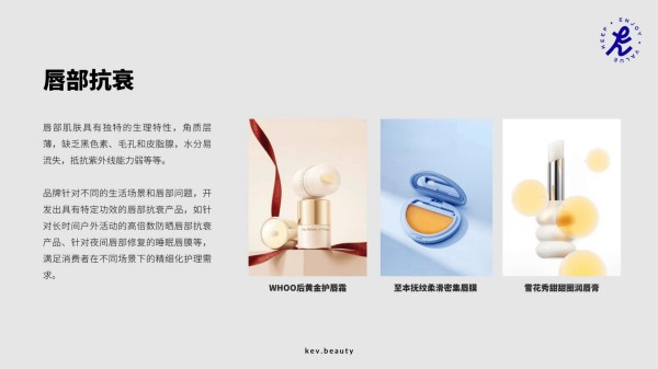 - 功效与场景细分:功效护肤向精细化发展,针对唇部、头皮等特殊部位和医美术后修复等场景研发产品,像CIBIO'2树莓盈亮淡纹唇膜、Spes青蒿侧柏叶头皮精华洗发膏和可复美医用重组胶原蛋白液体敷料。