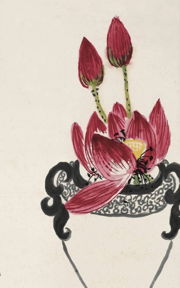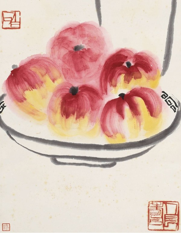 送给老舍的充满了文人的诗意与对新生活的期盼。荷花昂扬向上生长,苹果丰硕堆成小山,仿佛能感受到笔下那股蓬勃的生命力。见证的是艺术与文学的知音之交。