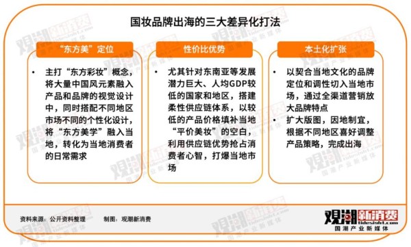 不论是东南亚、日本、北美还是其他国家和地区,在海外市场的激烈竞争中,产品的差异化都是关键。在众多出海品牌中,三类差异化打法——“东方美”定位、性价比优势和本土化扩张是很多品牌的首选。
