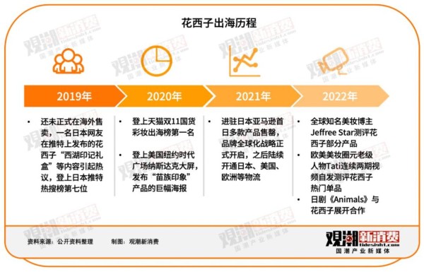 2021年3月1日,花西子进驻日本亚马逊首日多款产品售罄,品牌全球化战略正式开启,之后陆续开通日本、美国、欧洲等物流。