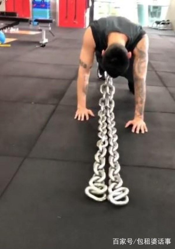 还拖动两条非常粗的铁链向后,看上去非常有男人魅力!