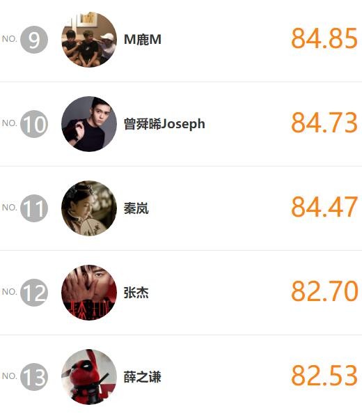 此外排在第9~第13位的明星是鹿晗、曾舜晞、秦岚、张杰,以及薛之谦,其中鹿晗回归前十,秦岚热度略微有所下滑,除了榜单中的明星,还有许多艺人的热度也在缓步上升,比如TFBOY易烊千玺、王俊凯、王源等等,正所谓“努力努力再努力”,这个夏天你最喜欢的明星是谁呢?
