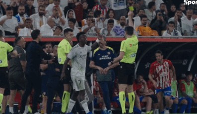 皇马主帅阿隆索站出来,为维尼修斯撑腰。龙哥朝着西蒙尼大喊:“嘿,你多关注自己的球员吧!”