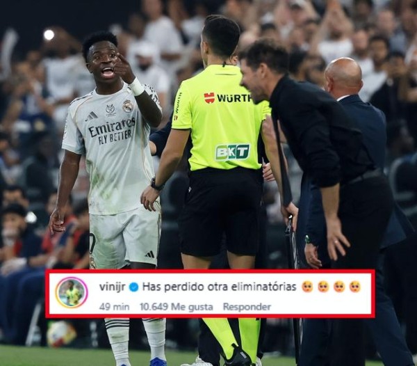这场西超杯半决赛关注度极高,维尼修斯和西蒙尼的冲突也在社媒上引发讨论。记者罗马诺转发两人的冲突视频,维尼修斯留言:西蒙尼又输了淘汰赛!这是对西蒙尼最好的反击。