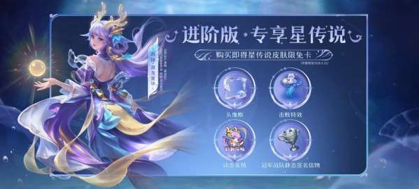 进阶版的福利还是比较丰富,除了80级的西施星传说皮肤外,还有头像框、击败特效和动态表情等,同步上线的局内道具都是与西施星传说皮肤为同一风格。