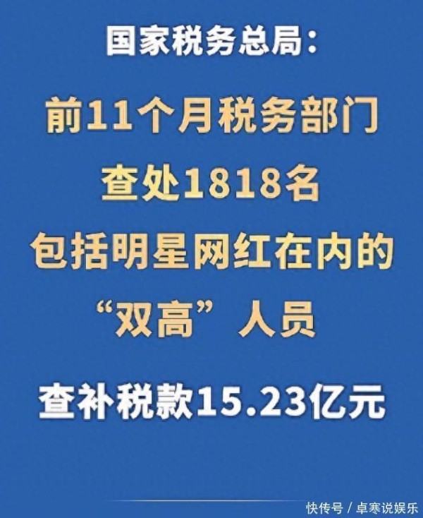 1818名“双高”明星网红被查!税务重拳出击,补税超15亿元