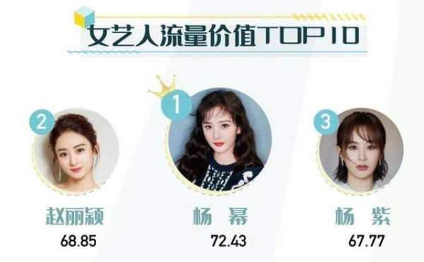 最近,在女艺人价值排名前十位,很多朋友都开始注意到这一点。毕竟,女艺人的价值清单可以看出女艺人在娱乐业中的名气。首先,让我们来看看女艺人流量价值中的前三名第一名是 杨幂 ,第二名是赵丽颖,而第三名就是杨紫啦!