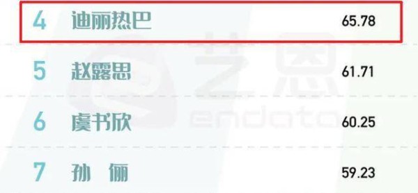 首先第四名的是 迪丽热巴 ,排在第五名的是赵露思,排在第六名的是虞书欣,而排在第七名的就是孙俪啦。