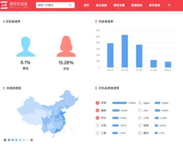 图为“鹿晗关晓彤恋情公开”话题在今日头条媒体实验室的用户阅读数据