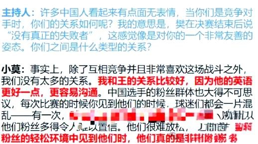 从小莫的描述中,我们可以窥见中国乒坛“饭圈文化”的某种程度上的盛行。他坦言,在中国的比赛中,经常会在通道处遭遇球迷的围堵,这无疑给球员的正常通行带来了不小的困扰。 体育明星之所以备受瞩目,不仅因为他们能够在赛场上为国家赢得荣誉,更因为他们的每一次进步与成就都与我们日常生活息息相关,激励着我们不断前行。