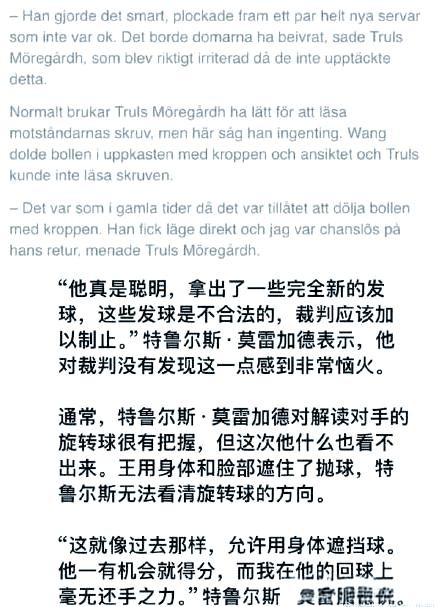 谈及小莫的这次采访,内容可谓是一大看点!我们熟知,小莫与樊振东之间有着深厚的友谊。在樊振东遭遇困境时,小莫曾担忧他可能无法坚持下去。而当樊振东缺乏陪练时,小莫也伸出了援手。此次小莫重返瑞典,接受媒体采访时,他不仅为樊振东鸣不平,还特别提到了王楚钦的发球技巧。在接受媒体采访时,小莫针对王楚钦的发球技巧提出了自己的看法。 小莫公开谈论了樊振东与王楚钦的技术,对王楚钦的遮挡发球存在问题,并不符合标准。此外,有网友爆料称,不仅小莫一人持有此观点,日本知名乒乓球选手水谷隼也在外网公开指出王楚钦的发球存在缺陷,经常遮掩发球动作。