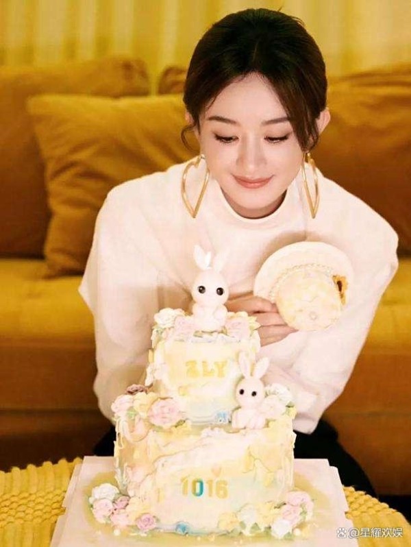 赵丽颖38岁庆生照曝光,纯净眼神令人心动,抱手捧兔子蛋糕太甜了