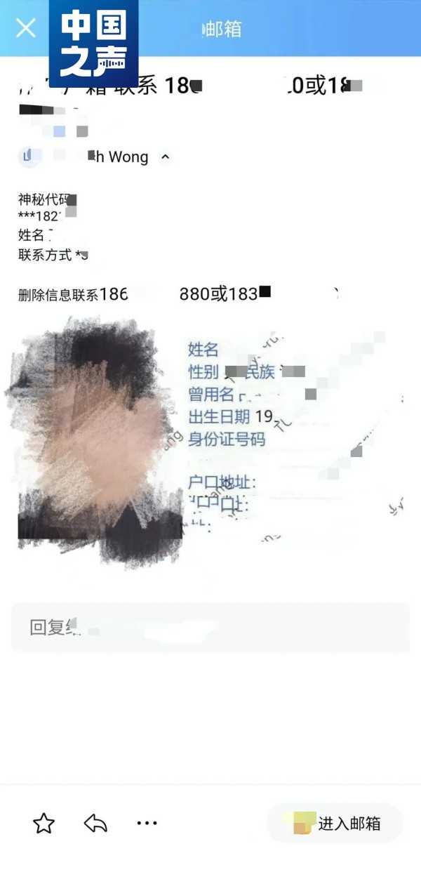 昨天(22日)接受中国之声采访时,川烈说,在被“开盒”之后,他和家人不断接到谩骂、骚扰的电话、短信、邮件等。“一直骚扰,刚开始不断给我打电话发短信,后来他们找到了我爸妈、我妹妹、妹夫,甚至还找到了我妹夫的爸妈。”