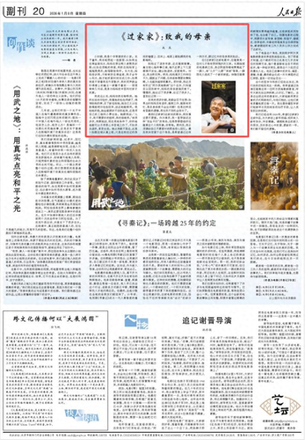 1月8日,《人民日报》副刊版刊发成龙的署名文章《〈过家家〉:致我的母亲(创作谈)》。