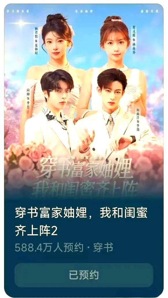 15、《穿书富家妯娌,我和闺蜜齐上阵2》由林君怡、贺灵榣、向帅、何雨洋共同出演,该剧在红果平台的预约量已突破580万,成为备受瞩目的焦点。