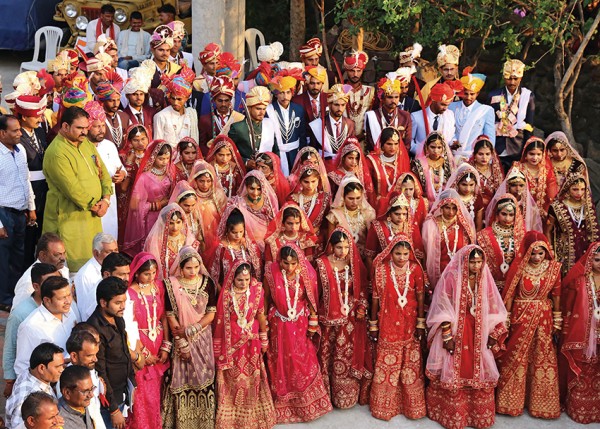2023 年4月22日,新人们在印度博帕尔举行集体婚礼