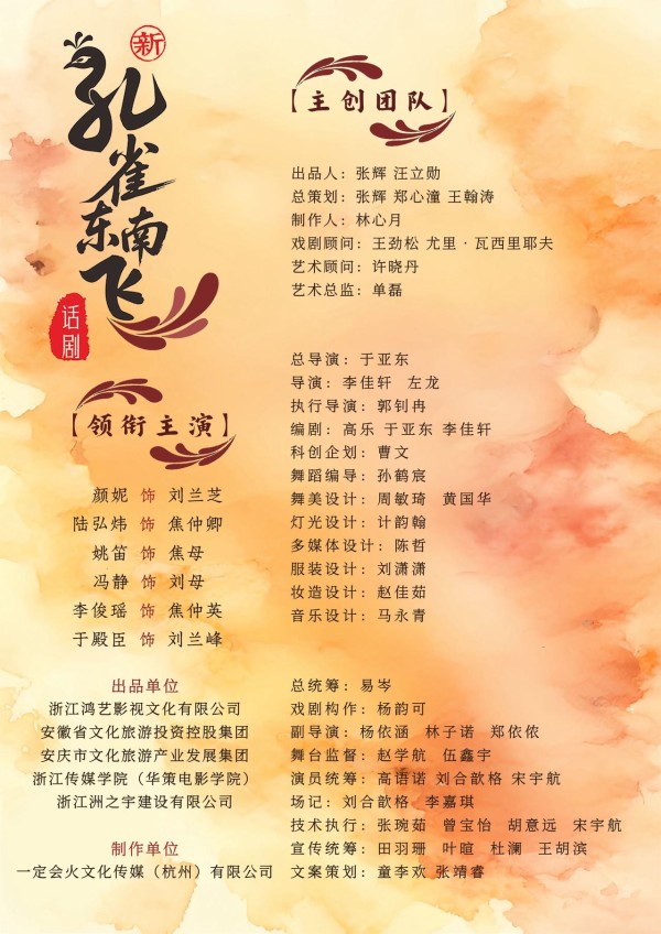 1月30日、31日,“向经典致敬”明星版话剧《新孔雀东南飞》将在杭州大船剧院上演。