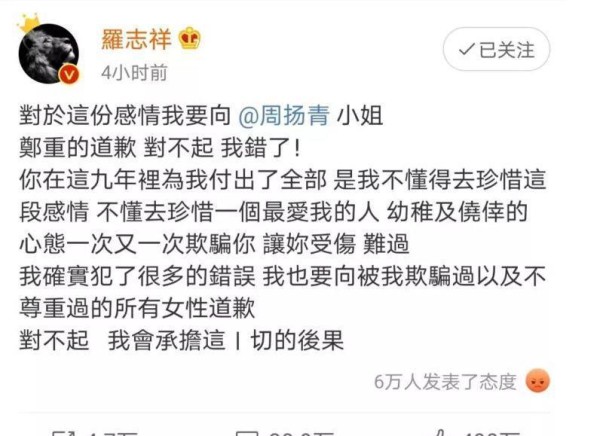 一句“我洗不白了,你放心”,罗志祥或已认清现实